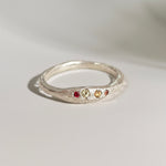 Handcrafted in our Sydney Studio on Dharawal Country, from recycled silver and responsibly sourced gemstones, the metal used in this ring is melted down and hand poured into a mould so that the stones are cast into place, not set. This process of sand casting, or Delft clay casting results in one-of-a-kind fine jewellery pieces. Due to the nature of this process, the stone colour, placement, texture and finish of each piece will be unique. That’s the beauty of buying made to order, handmade jewellery!