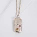 Recycled silver and mixed sapphire tablet necklace, ethical jewellery handmade in Sydney.