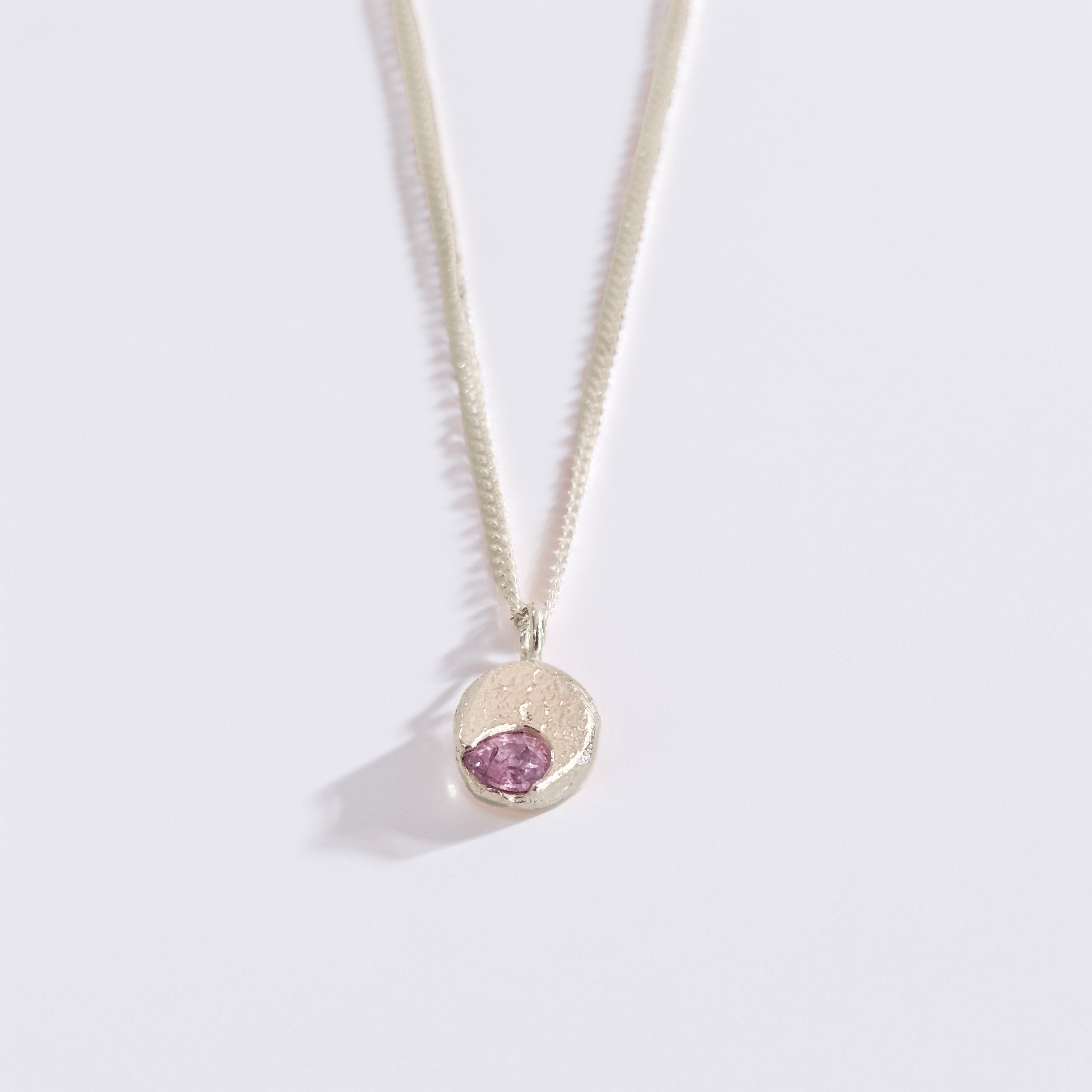 Recycled silver and pink sapphire bubble pendant, ethical jewellery handmade in Sydney.