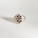 Handcrafted in our Sydney Studio on Dharawal Country, from recycled silver and responsibly sourced gemstones, the metal used in this ring is melted down and hand poured into a mould so that the stones are cast into place, not set. This process of sand casting, or Delft clay casting results in one-of-a-kind fine jewellery pieces. Due to the nature of this process, the stone colour, placement, texture and finish of each piece will be unique. That’s the beauty of buying made to order, handmade jewellery!